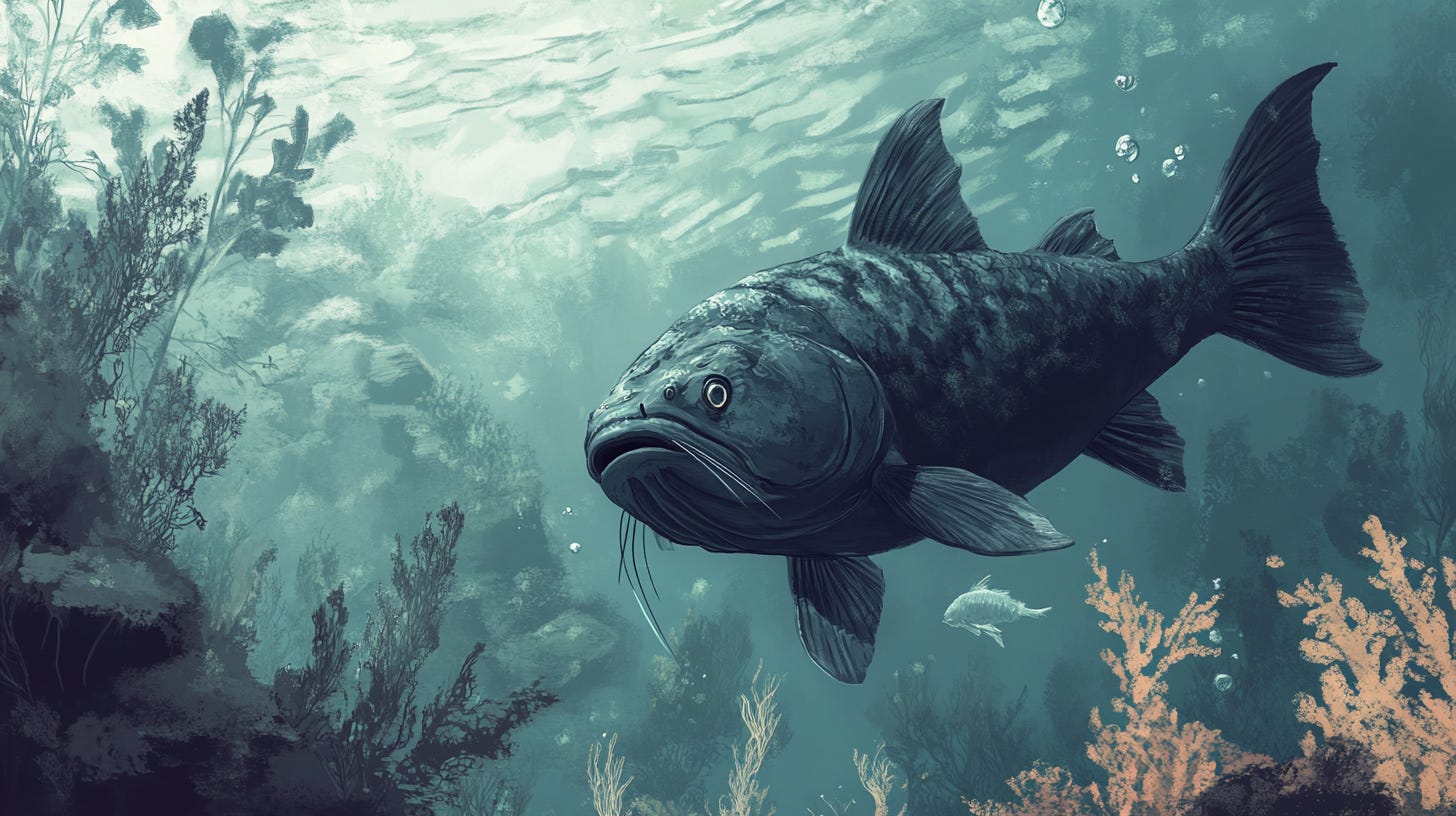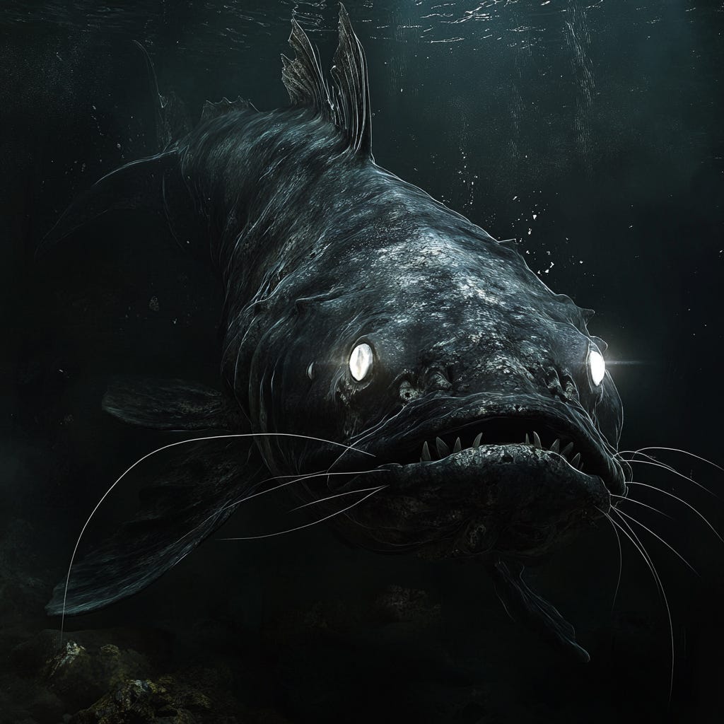 The catfish's whiskers were luxurious. His skin black as night.