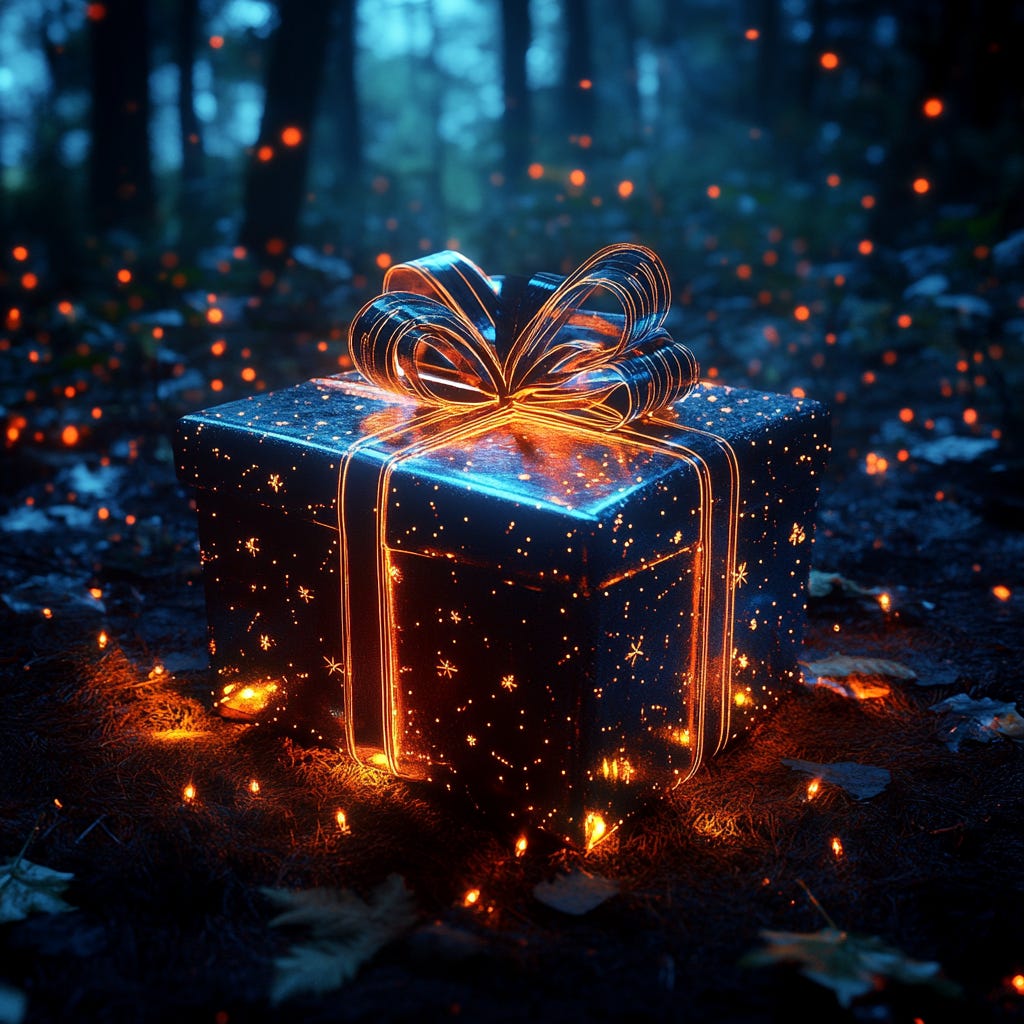 Across the planet, people who were without fears, opened the packages and found their hearts desire. A blind man, homeless in Russia woke in a park, for the first time in decades to a pair of glasses which returned his sight. A fisherman in Bali found a net which could not be torn, nor tangled. It always returned to him filled with fish.